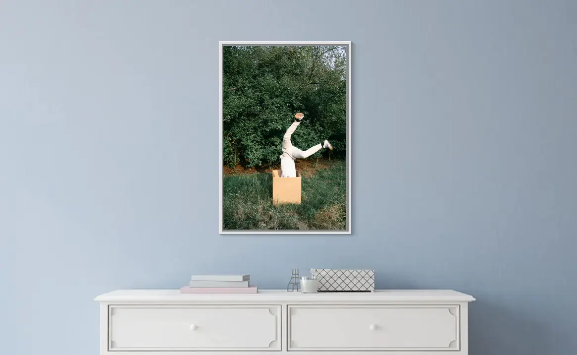 Der spezielle Schattenfugenrahmen aus Holz schafft einen 8 mm breiten sichtbaren Spalt zwischen dem Bild und dem Rahmen, der dein Wandbild schwebend erscheinen lässt!